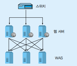 웹 서버와 WAS의 기능적 분류를 통해 효과적인 분산을 유도한 형태이다. 정적인 데이터는 구조적으로 앞에 존재하는 웹 서버에서 처리하고, 동적인 데이터는 뒷단의 WAS가 처리한다.